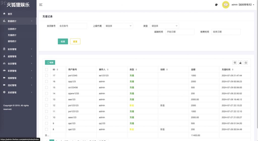 提供充值与提现的统计查询服务