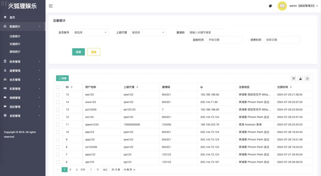 代理仅展示其下级用户的数据