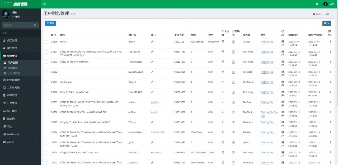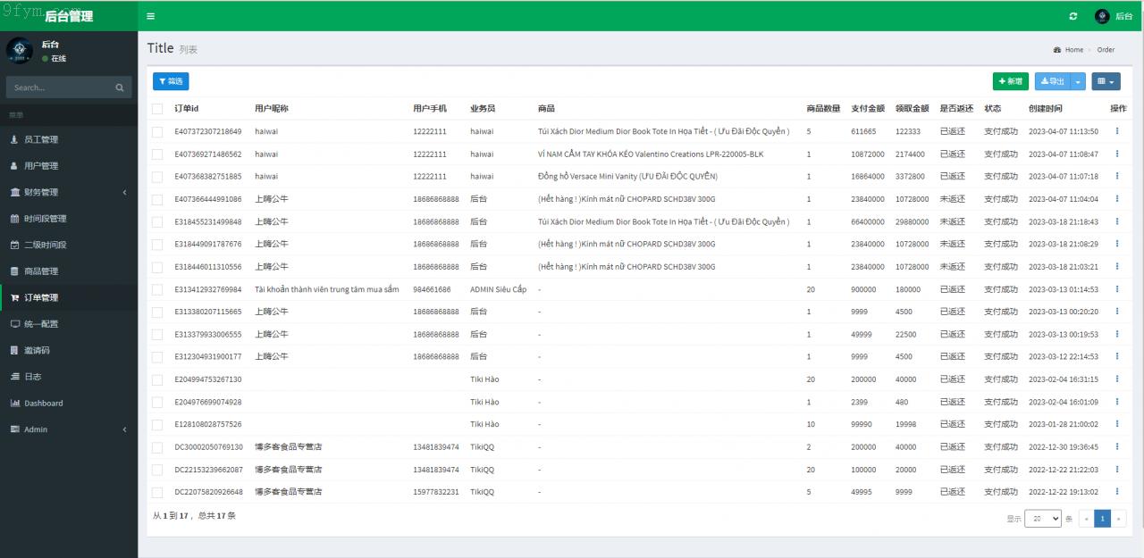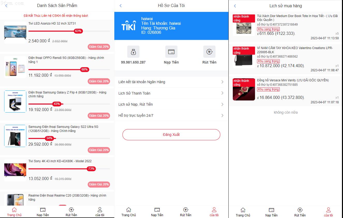 该系统是专为越南市场设计的TIKI奢侈品投资返利平台