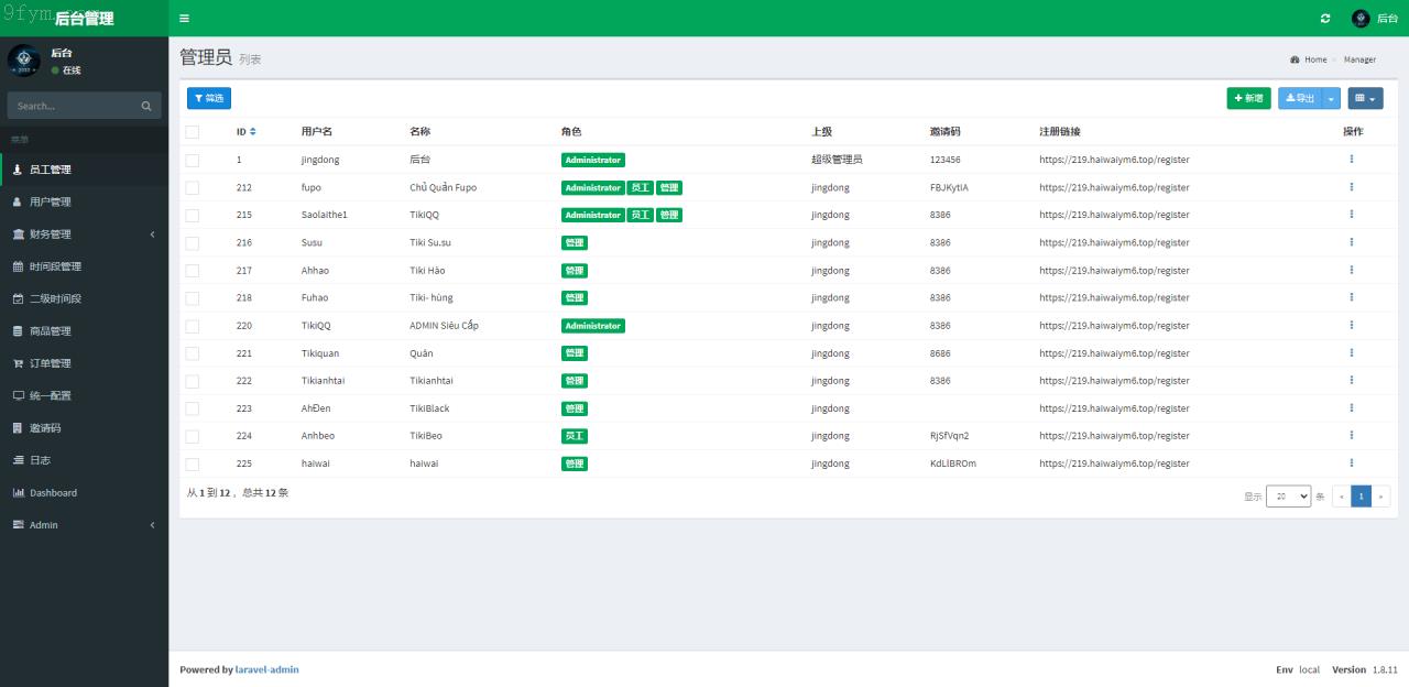 基于Laravel框架开发,具备权限管理功能的代理后台。用户可生成独立邀请码,管理员可在后台灵活设置购买权限、返现周期以及持续购买的相关规则。