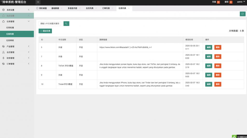 独家推荐_最新UI定制多语言海外刷单/app优化系统/抢单系统/订单自动匹配系统/连单卡单/海外源码_抢单刷单精品 2025-04-23 抢单源码/刷单 487 全新UI 全开源 多语言(有语言包随便增加语言) 连单 卡单完美运营, 带做任务模式 下载资源下载价格500 USDT立即购买 原文链接:https://www.9fym.com/nsm_11171.html,转载请注明出处。 0 最新UI定制多语言海外刷单/app优化系统/抢单系统/订单自动匹配系统/连单卡单/海外源码
