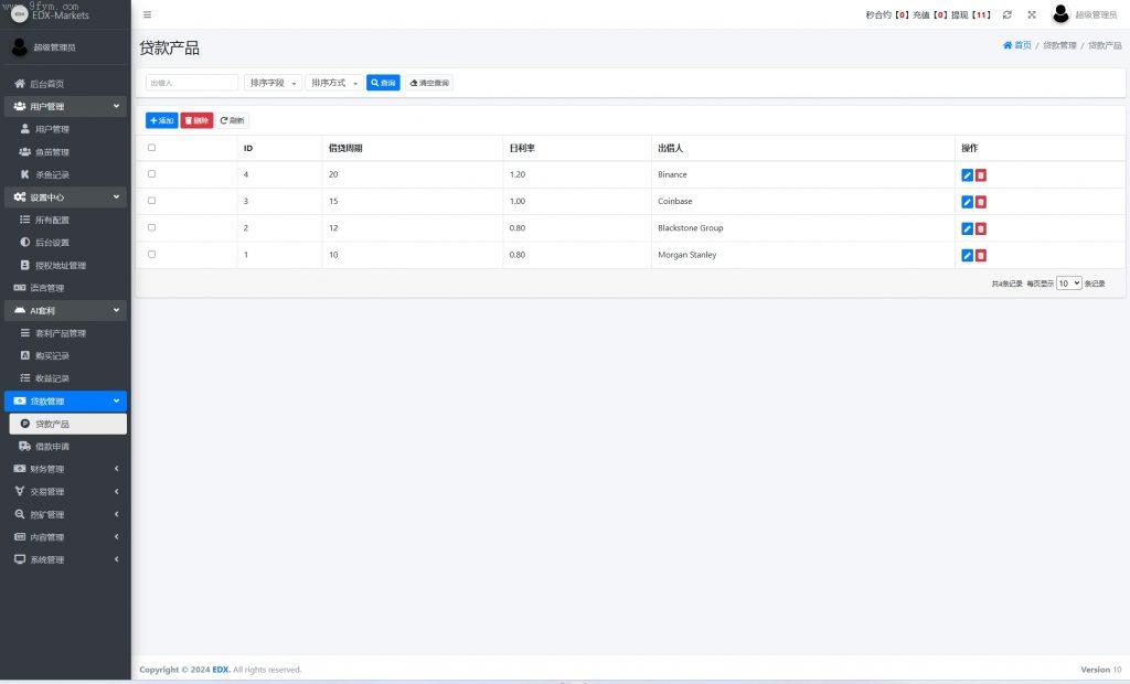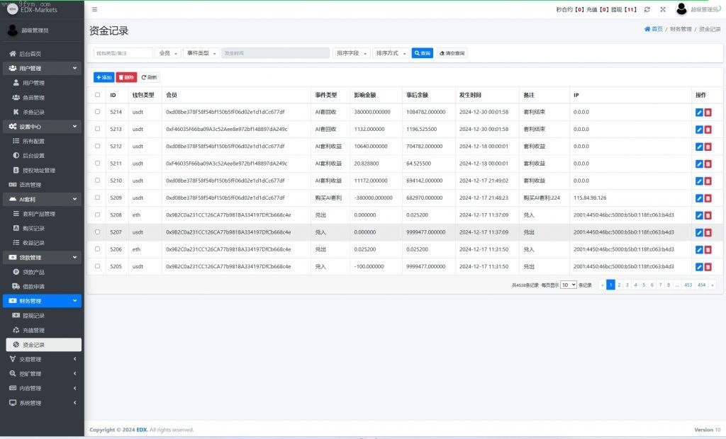 系统功能:秒合约交易、套利、矿机、借贷_功能