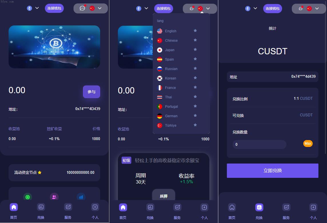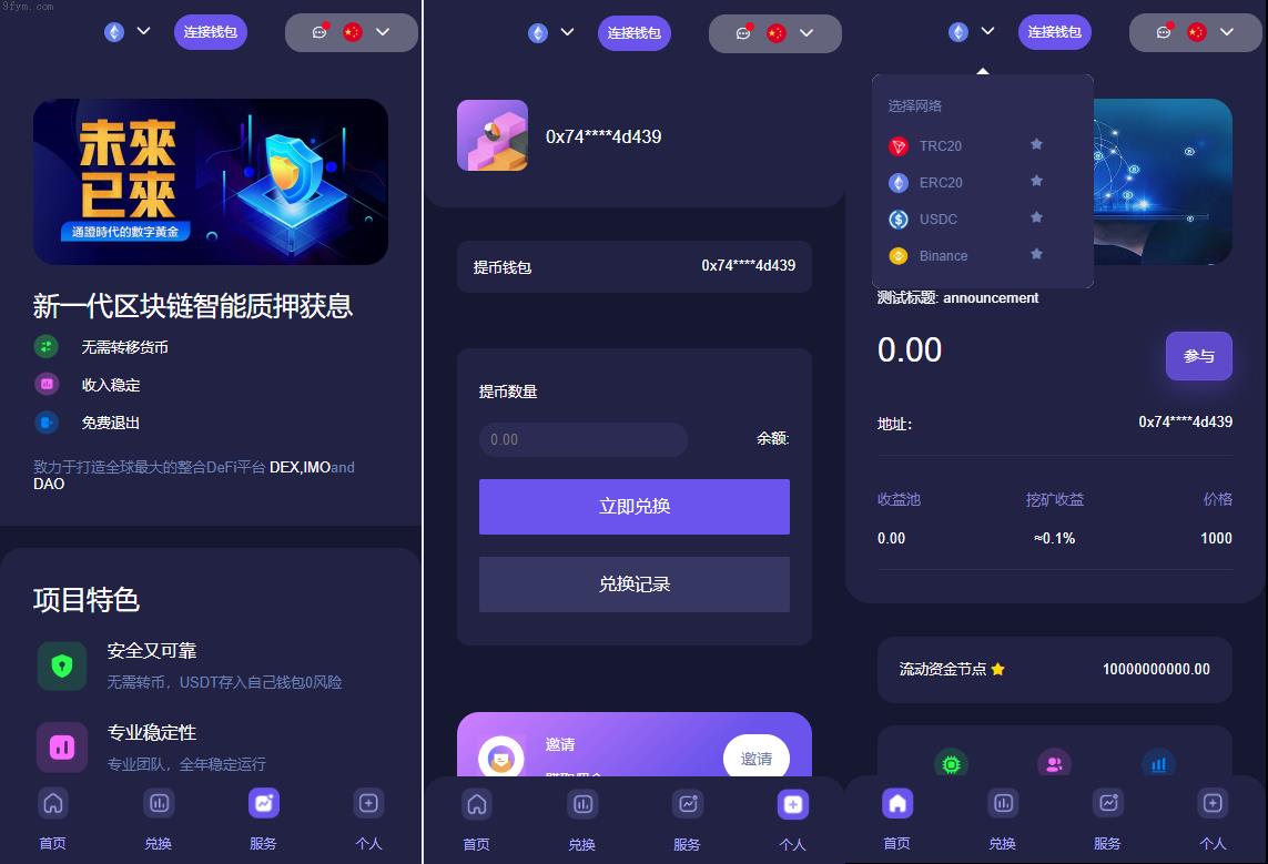 后台功能非常完善 分红模式 每天分红四次 利滚利模式 根据质押的周期的利率决定。