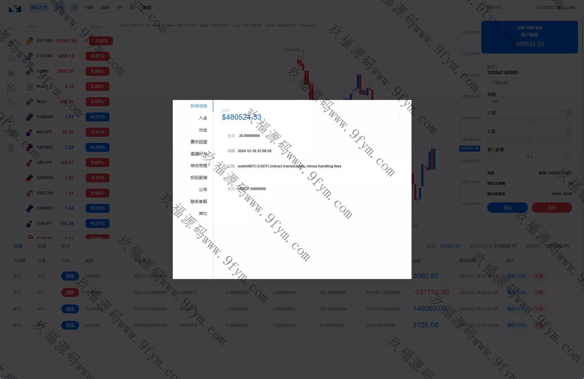 系统是fx7二开的新增PC端,手机端新增理财功能去除秒合约