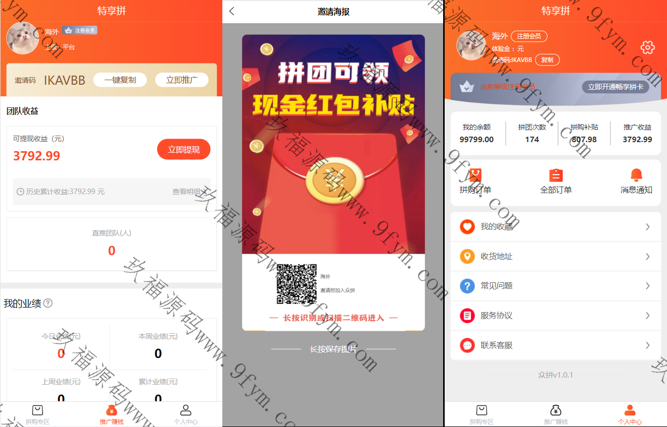 多人拼团,部分人获得得商品,没获得商品的人退款并瓜分红包,红包佣金从获得商品的人的订单利润里返。