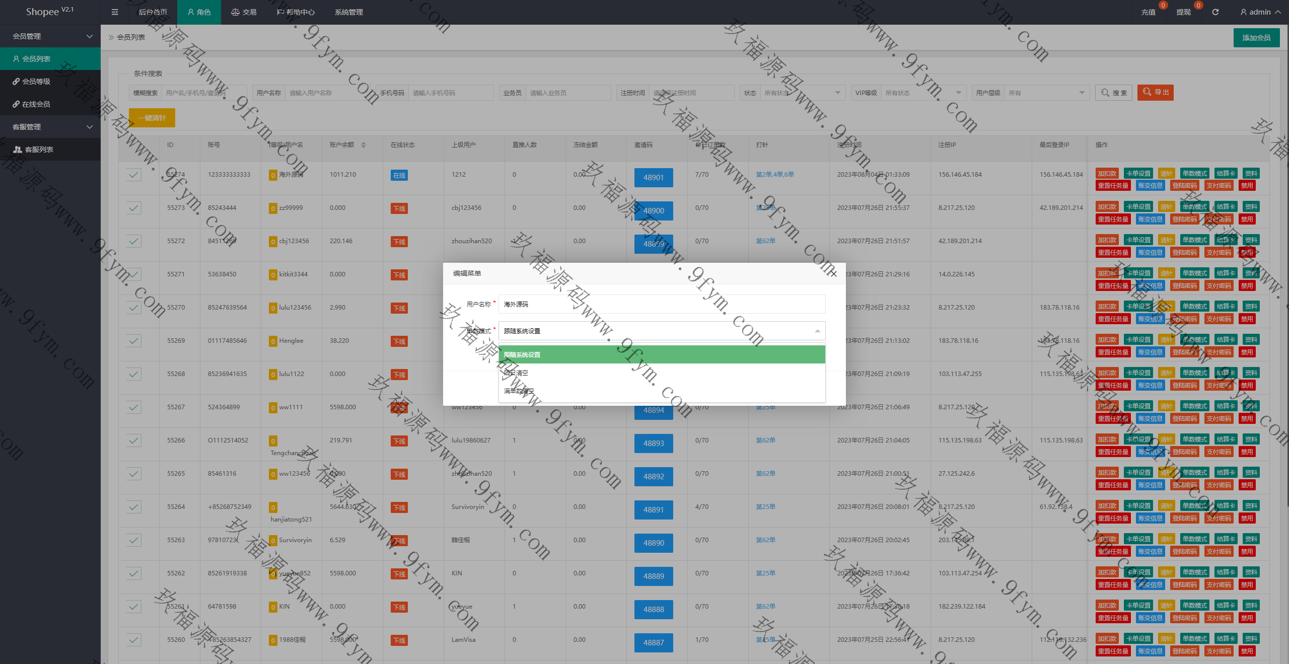 系统新增卡单、订单清空(会员满足多少单第二日清空或者是满单数后清空)等功能