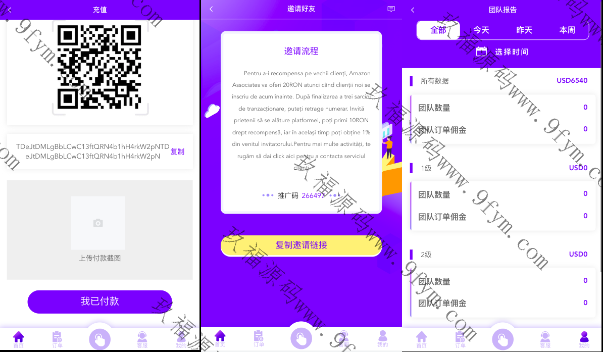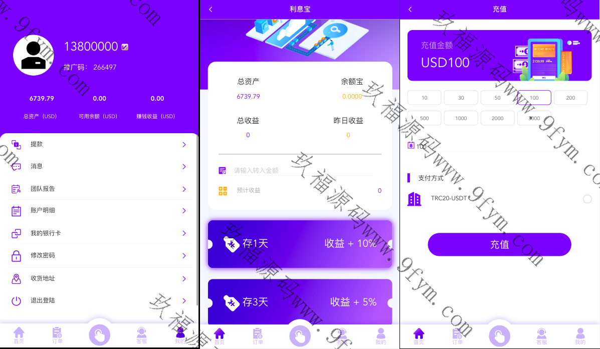 后端thinkphp框架,系统支持叠加组,打针,余额宝等功能。usdt充值,权限代理后台