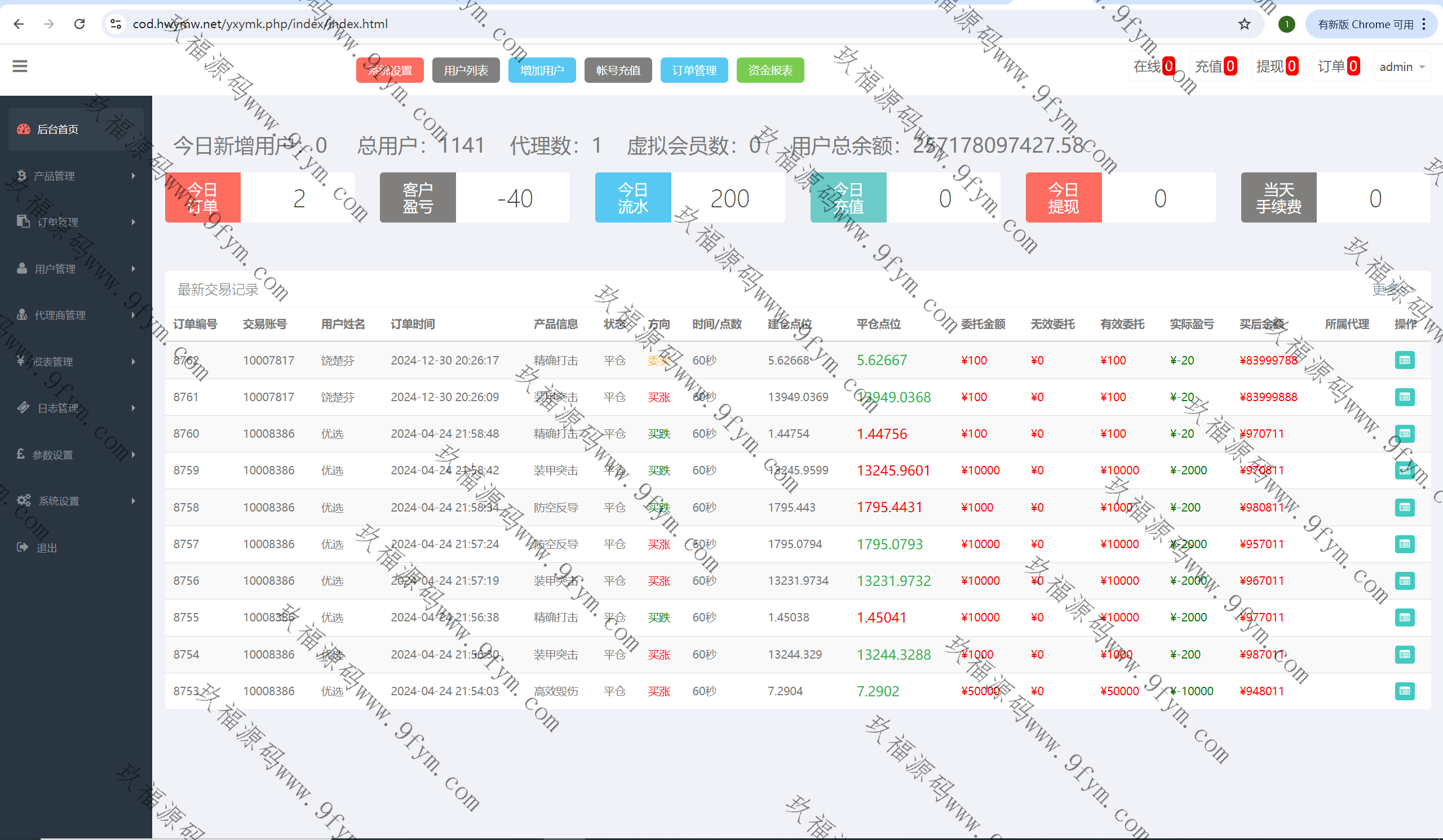 k线、结算都正常,控制也是很OK的,后台产品回收站里面有之前的产品数据,比如区块链、期货、外汇等产品