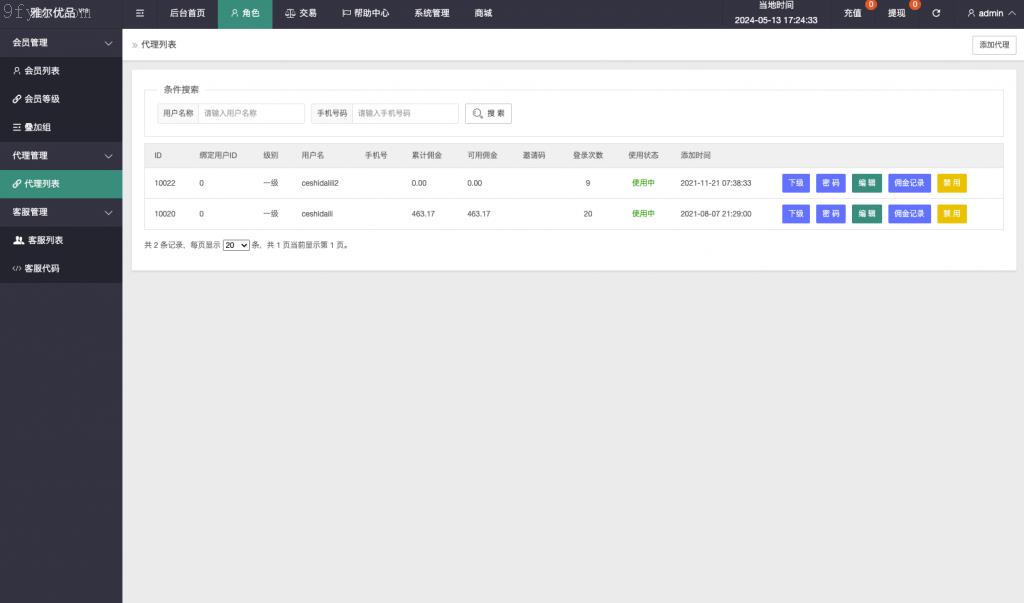 全新定制的UI界面,新增注射功能模块,并提供福利清单。系统支持调整代理佣金比例,实现多级返佣机制。