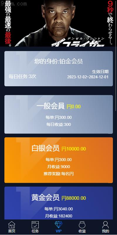 系统的核心玩法如下:用户通过购买不同等级的会员套餐实现身份升级。领取任务后,按照要求观看视频,当观看时间达到设定值时,系统将自动完成任务并给予奖励。此外,会员还可以生成专属邀请链接,邀请新用户注册加入。每当有好友通过该链接成功注册,邀请者即可获得相应的提成奖励。